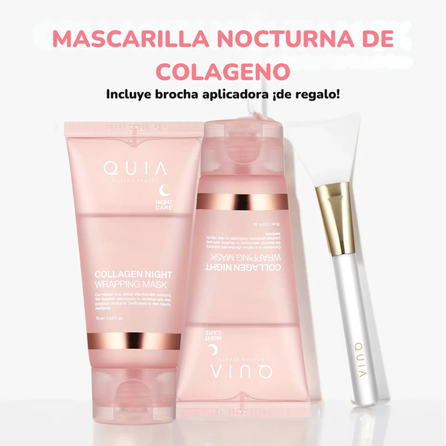 Mascarilla nocturna de colágeno que hidrata, suaviza y deja la piel radiante. Incluye brocha aplicadora de regalo.